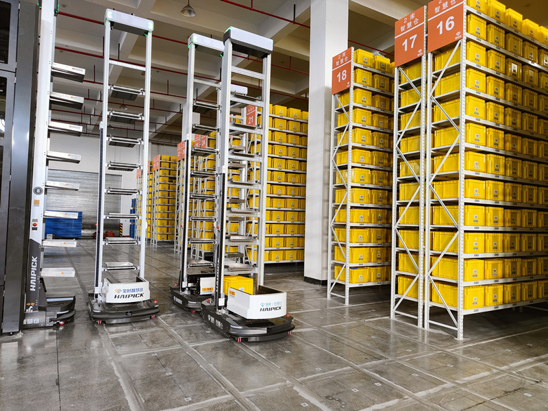 然而,在宝时智慧云仓上演的却是另一番景象:在偌大的仓库里,只有AGV机器人,根据WMS系统的调度,轻轻松松到指定货位拣取商品。